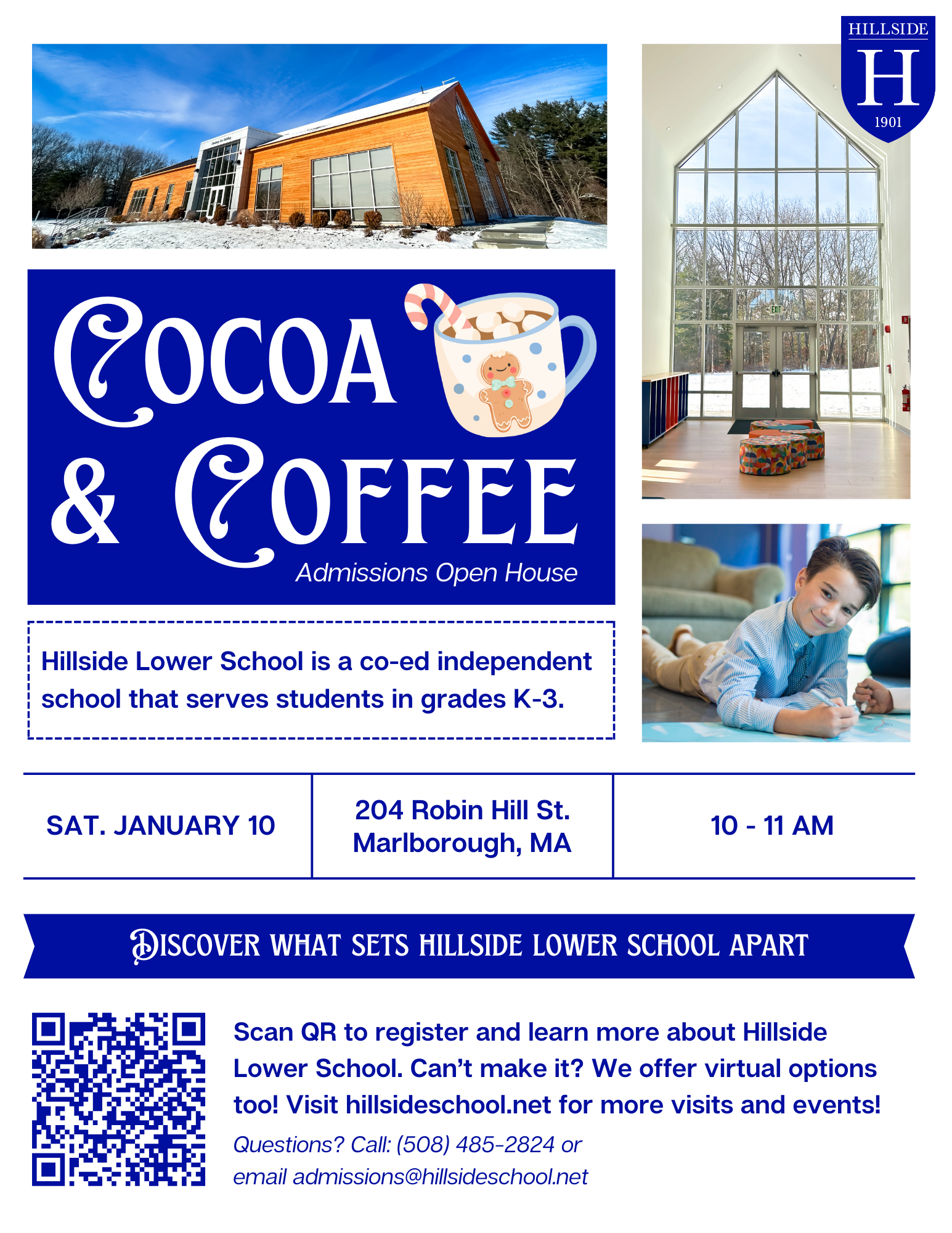 Discover what sets Hillside apart at our in-person open house. Explore our brand-new K-3 facility on a guided tour, attend an informative session followed by an open Q&A, and enjoy a family-friendly atmosphere with engaging activities for children. You’ll also have the chance to meet key members of our lower school team, including our Head of School, Director of Lower School Enrollment, and Learning Support Specialist.