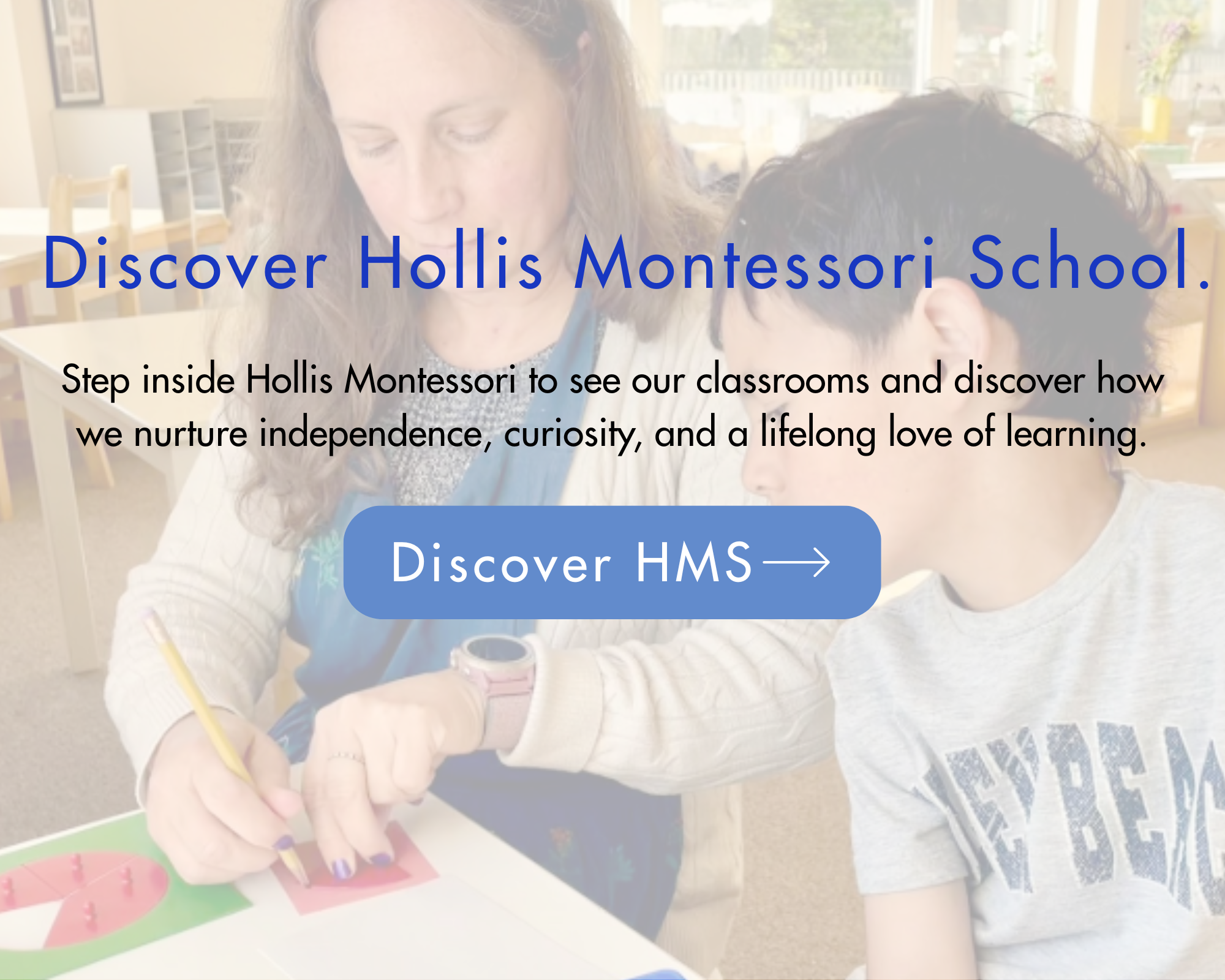 Choosing a school is an important decision, and we believe the best way to understand Montessori education is to experience it in action. Hollis Montessori School invites you to join us for a guided visit where you’ll step into our classrooms and learn how our programs support children’s independence, curiosity, and love of learning. This experience is open to families who are new to Hollis Montessori as well as those who have already begun the admissions process and would like a deeper understanding of our school.