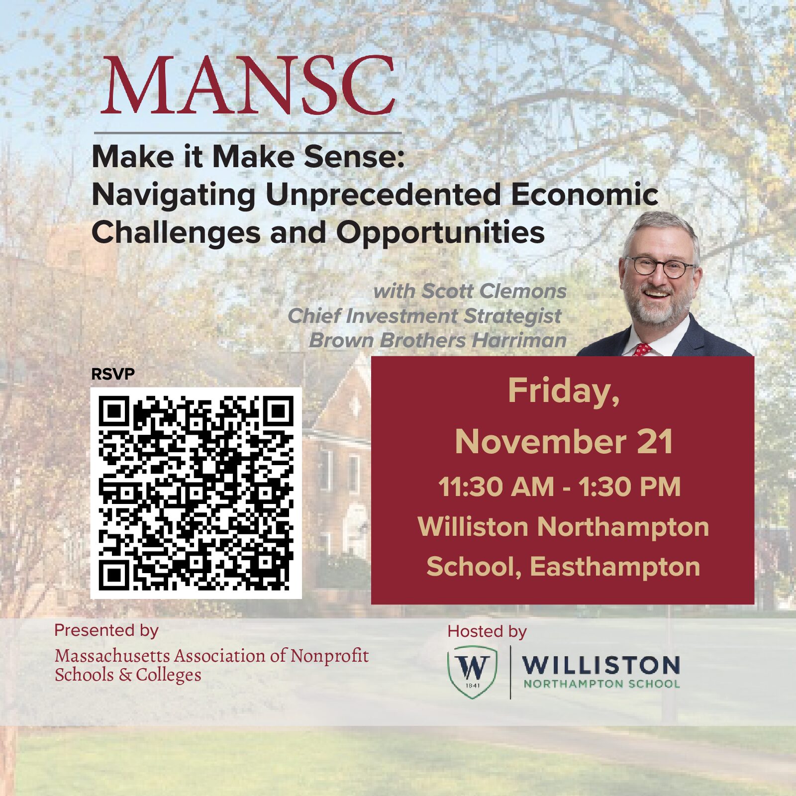 Join us our for our featured speaker, Mr. Scott Clemons, Chief Investment Strategist from Brown Brothers Harriman to hear strategies and opportunities schools should consider in the current economic environment.