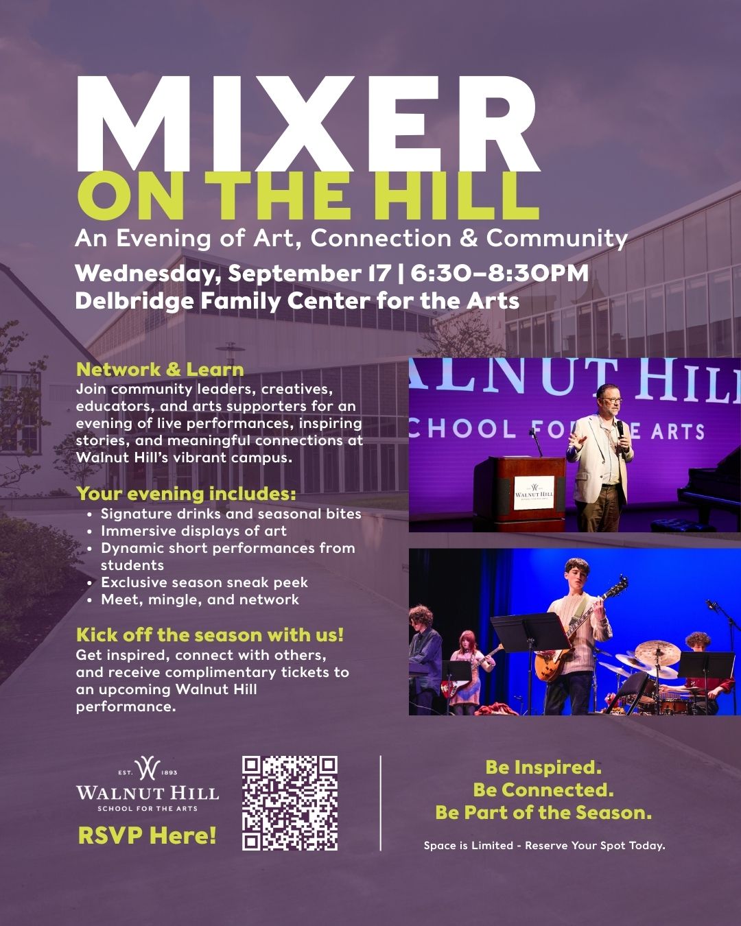 Join community leaders, creative professionals, educators, and arts supporters for an unforgettable evening blending live performances, inspiring stories, and meaningful connections—all set against the backdrop of Walnut Hill’s vibrant campus.