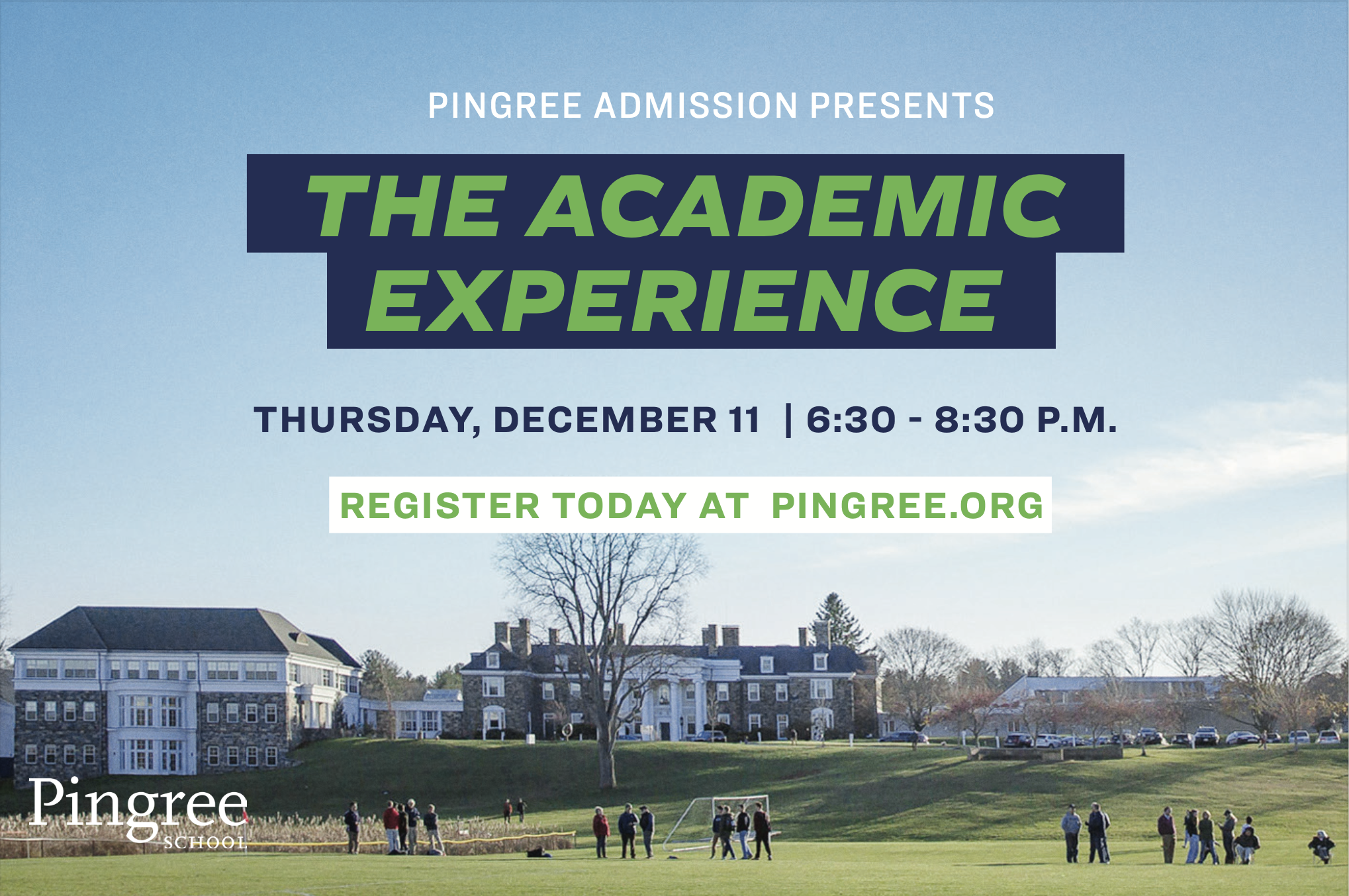 Learn about Pingree’s academic and co-curricular programs. Prospective students, parents, and guardians will meet students and faculty, attend sample classes, and hear from our associate head of school. Registration is recommended but not required.